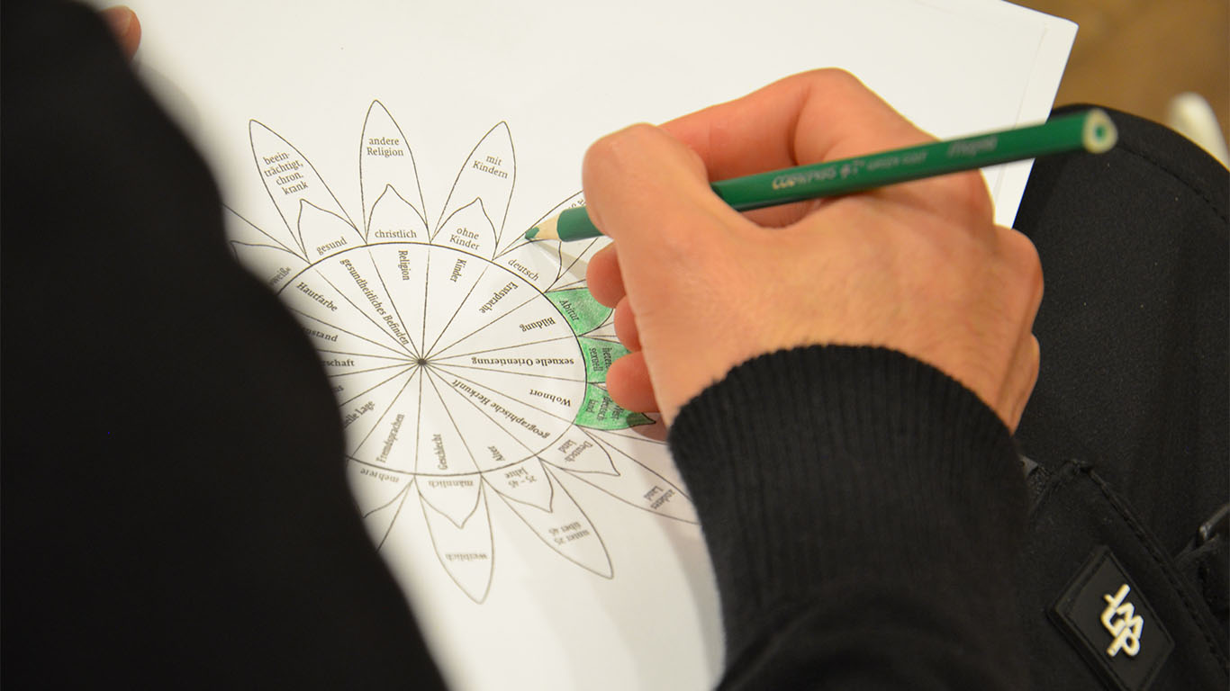 Nach dem Workshop und einer kurzen Kaffeepause folgte der letzte Workshop. Als Referenten haben wir Mahir Türkmen aus dem Team der Vielfaltsprojekte gewinnen können. "Argumentationstechniken gegen Diskriminierung" lautete dabei der Titel seines Workshops. Herr Türkmen präsentierte anschauliche Anwendungsbeispiele, um sich im Alltag vor Diskriminierung zu schützen. Anschließend haben die Teilnehmenden sich in Kleingruppen eingefunden, um über ihre persönlichen Diskriminierungserfahrungen zu sprechen und welche Methoden sie angewendet haben, um sich oder andere zu schützen. Die Gruppen verständigten sich jeweils auf eine Geschichte, die vorgetragen wurde. Der Referent ging auf die zahlreichen Erfahrungen individuell ein und erklärte ihnen, dass viele bereits unbewusst eine Strategie gefunden haben, um mit Diskriminierung im Alltag umzugehen. Am Ende der Reflexion hatte Herr Türkmen die Teilnehmenden mit Nachdruck ermutigt, weiterhin so couragiert gegen Diskriminierung aufzutreten.